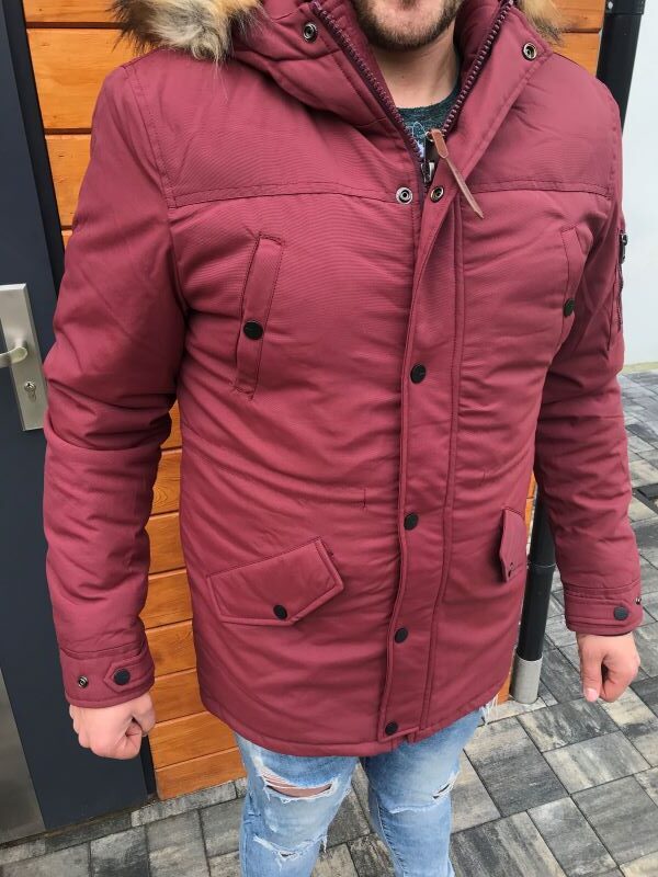 Kurtka parka męska bordowa z futerkiem na kapturze