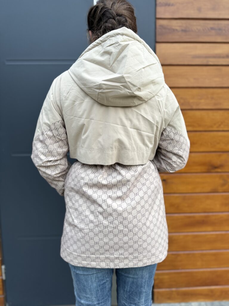 Kurtka damska wzorzysta z kapturem beżowa